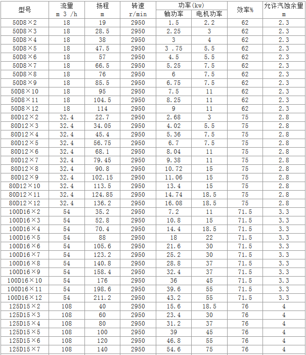产品概述: D型卧式、单吸多级、分段式离心泵。具有效率高、性能范围广、运行安全平稳、噪音低、寿命长、安装维修方便等特点。供输送清水或物理化学性质类似于水的其它液体。