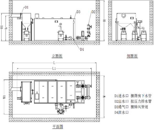不受环境限制,地上地下均适用,KYF系列油水分离器,地上地下餐饮厨房均适用,地面或设备坑安装方式依实际情况可选。 |